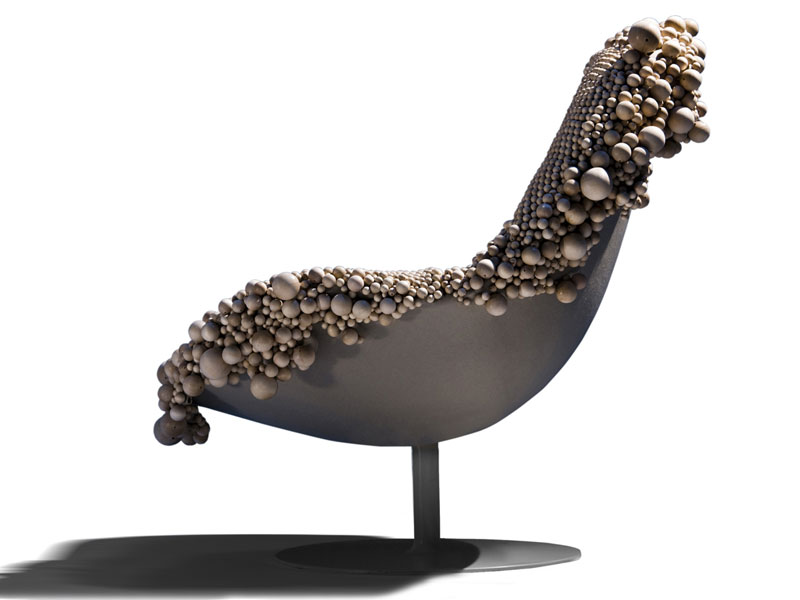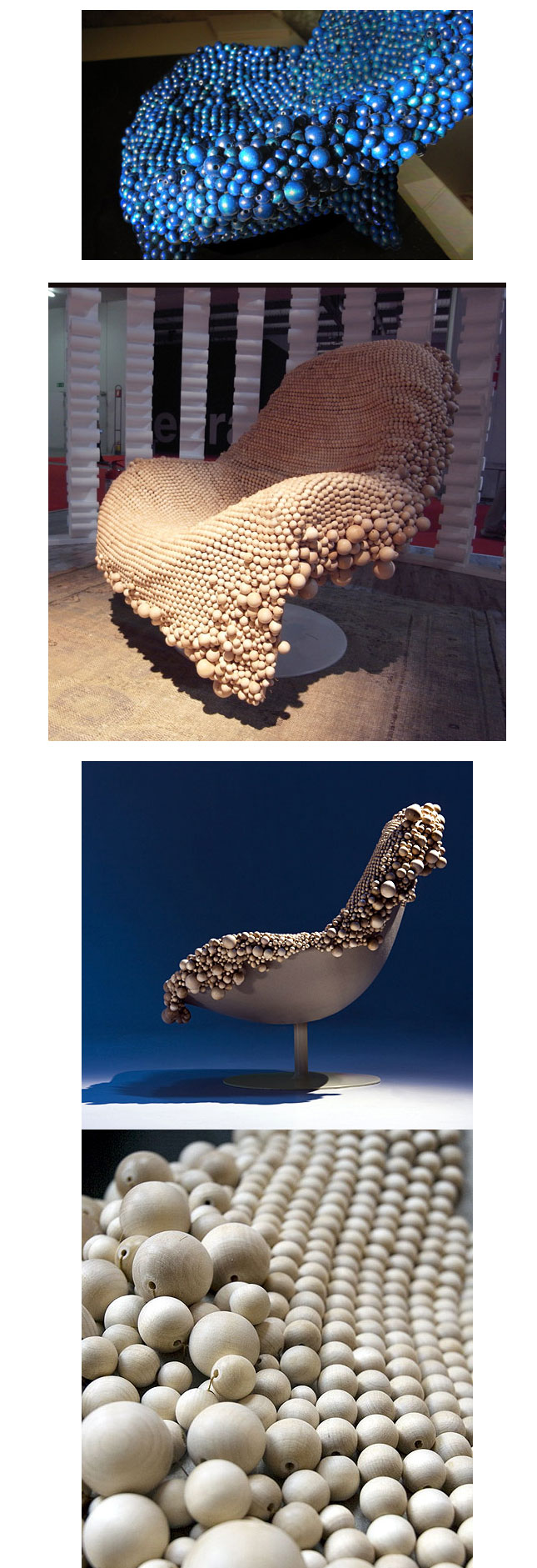 Drewniane kulki tworzą siedzisko krzesła Wood