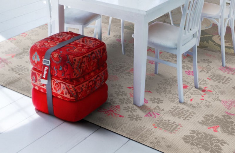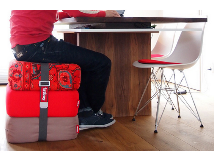 Trzy poduchy tworzą stabilną wieżę – wygodny, uniwersalny i stylowy dodatek w każdym domu. Można jej używać nie tylko jako wysokiego siedziska lub stolika. Można po prostu rozrzucić trzy kolorowe, niskie pufki na podłodze.