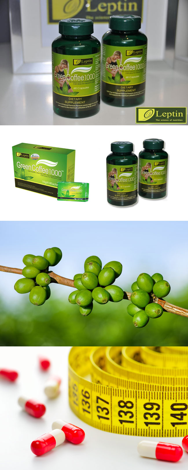 Uczestnicy badania, przez okres 22 tygodni zażywali kapsułki z ekstraktem z ziaren zielonej kawy. Nie zmienili w tym czasie swoich nawyków żywieniowych, ani nie zwiększyli aktywności fizycznej. Samo stosowanie suplementu diety doprowadziło do zmniejszenia masy ciała średnio o 10%, zaś objętości tkanki tłuszczowej o około 16%. Substancją aktywną, odpowiedzialną za tak skuteczne działanie zielonej kawy, jest zawarty w niej kwas chlorogenowy, który wspomaga wątrobę w rozkładzie kwasów tłuszczowych oraz zamianie węglowodanów w energię. Nie bez znaczenia pozostaje również kofeina, przyspieszająca uwalnianie, zgromadzonych w naszym ciele, kwasów tłuszczowych. Green Coffee 1000 to naturalny suplement diety, który pomaga osobom z dużą nadwagą w zrzuceniu zbędnych kilogramów. Występuje w postaci instant (tj. w saszetkach) oraz w kapsułkach. Green Coffee 1000 zawiera antyoksydanty niezbędne do pobudzenia metabolizmu, przyspieszając tym samym proces spalania tkanki tłuszczowej. Zawarty w suplemencie magnez dostarcza sił witalnych, pomagając utrzymać właściwy poziom energii. Produkt pomaga chronić organizm przed stresem, a także zapobiegać procesom starzenia. Jednocześnie wspomaga utratę zbędnych kilogramów i utrzymanie odpowiedniego poziomu wagi. Zawarta w suplemencie kofeina przyspiesza uwalnianie kwasów tłuszczowych, zgromadzonych w naszym ciele. Kwas chlorogenowy z kolei wspomaga wątrobę w rozkładzie kwasów tłuszczowych oraz zamianie węglowodanów w energię. Skutki spożywania zielonej kawy to nie tylko utrata zbędnych kilogramów, lecz także obniżenie ciśnienia, zmniejszenie ryzyka wystąpienia choroby Alzheimera, ochrona organizmu przed wolnymi rodnikami oraz ogólna poprawa samopoczucia i stanu zdrowia.