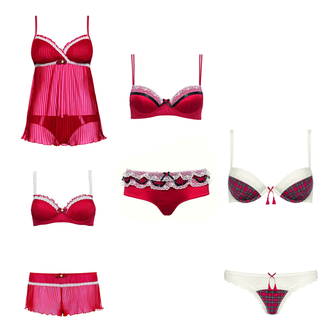 Specjalnie dla modowych trendsetterek marka wykreowała bieliźniany set w stylu neo folk. Połączenie białej koronki z kraciastydeseniem przyozdobiono czerwonymi dekoracyjnymi frędzlami. Trzecia odsłona świątecznej kolekcji to komplet w stylu baby doll. Czerwony plisowany jedwab połączony z białą, lekką koronką i stylowymi detalami.