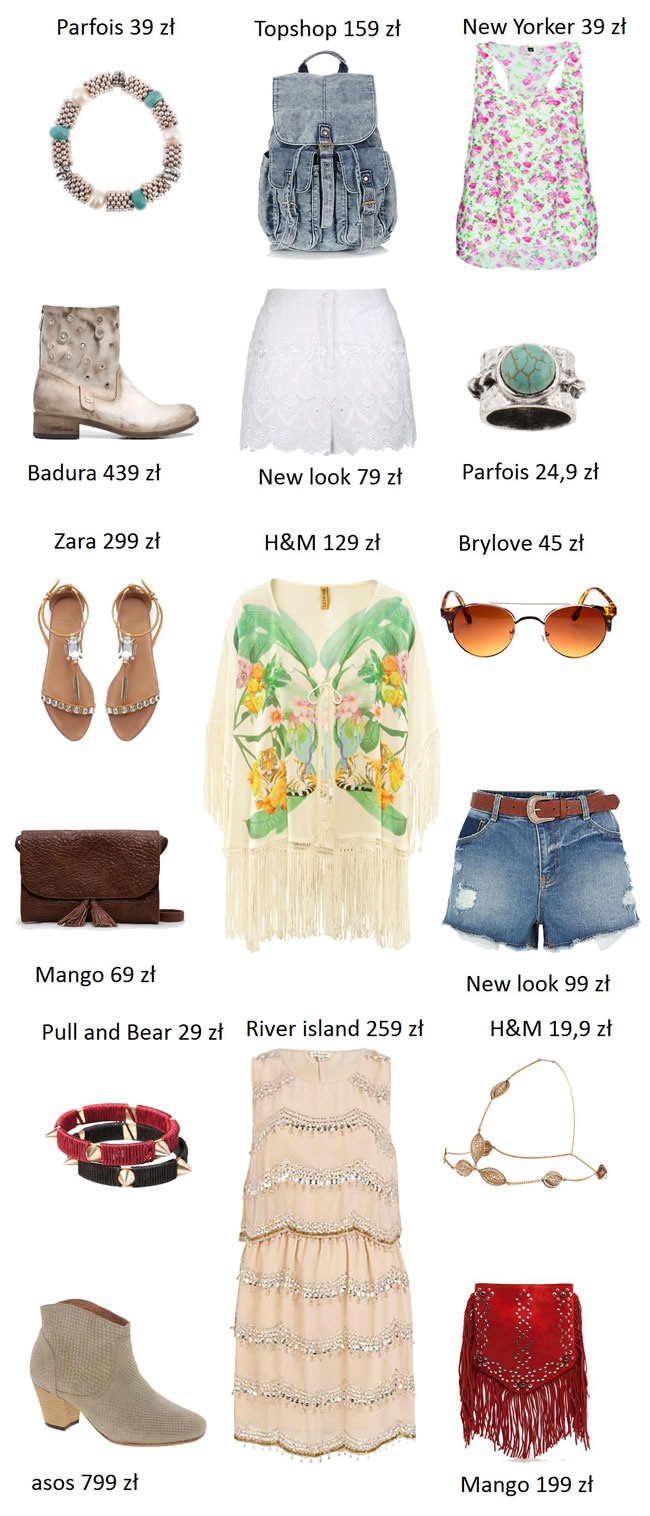 Uwielbiamy ją za nonszalancki luz i młodzieńczy charakter. Bardzo dużą rolę w stylu „dzieci kwiatów” odgrywają dodatki, są równie ważne jak cała kreacja. Torebki z frędzlami, ciężkie botki, duża ilość biżuterii czy koralików, masywne okulary – to wszystko w połączeniu tworzy totalnie hipisowski klimat. Jeśli chcesz wyglądać rodem z lat 60 i 70-tych koniecznie rozpuść włosy i wykonaj delikatny makijaż. Uwielbiamy ten styl!