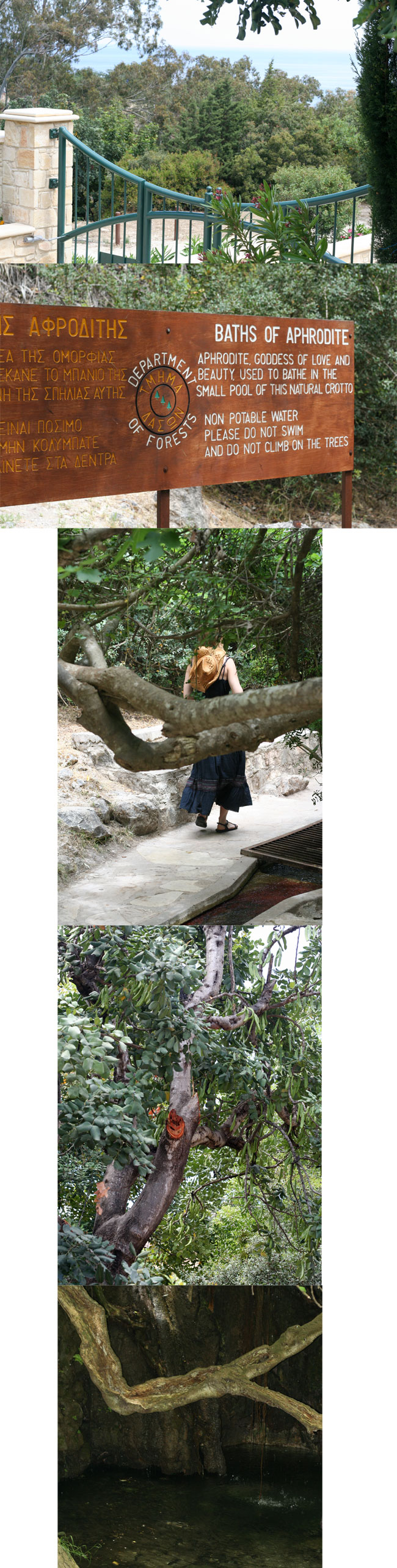 Łaźnia Afrodyty znajduje się niedaleko portu rybackiego w Latsi na półwyspie Akamas. Do małej groty otoczonej zielenią trafimy po krótkim spacerze przez ogród botaniczny pełen kwiatów, palm i roślin spotykanych na wyspie. Według mitu, to właśnie tu – w zacisznym basenie, zasłoniętym przed wzrokiem ciekawskich oczu skałami i figowcami, boginka miłości zażywała kąpieli upiększających. To tu poznała również Adonisa, który zatrzymał się przy źródle, by zmęczony polowaniem napić się wody. Ujrzawszy nagą boginię zakochał się w niej i wkrótce stali się kochankami.